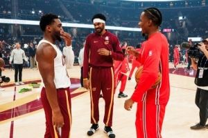 老队友碰面!骑士VS公牛赛前 米切尔&阿伦与前队友奥科罗攀谈
