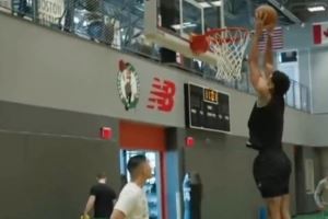 由视频可见,塔图姆已经可以在原地起跳完成双手扣篮,塔图姆配文写道:“一定是鞋子的原因。”