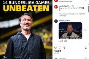 赛后,德甲官方也晒出海报报道这一数据。